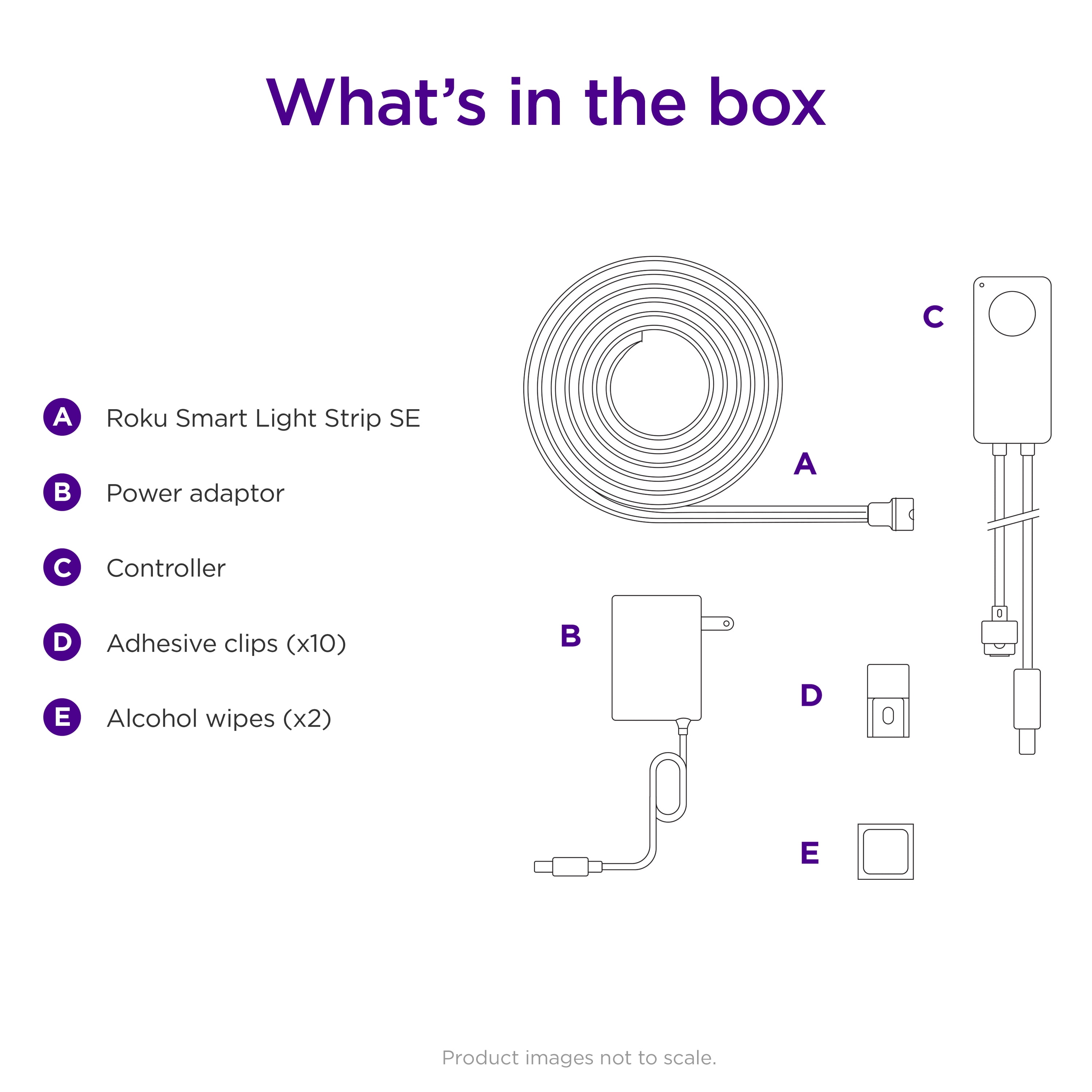 Roku Smart Light Strip SE set the scene in any room with 16 million color options, plus adjustable temperature and brightness for indoor locations. Custom presets create cinematic backlighting for movie nights, game days, dance parties, and more. Setup is a snap—just peel, stick, plug, and connect with your Roku Smart Home app for effortless control. Sync your Roku Smart Light Strip SE to your schedule so they come on automatically, or you can control your light strip using just your voice with an Alexa, or Google Assistant-enabled device.