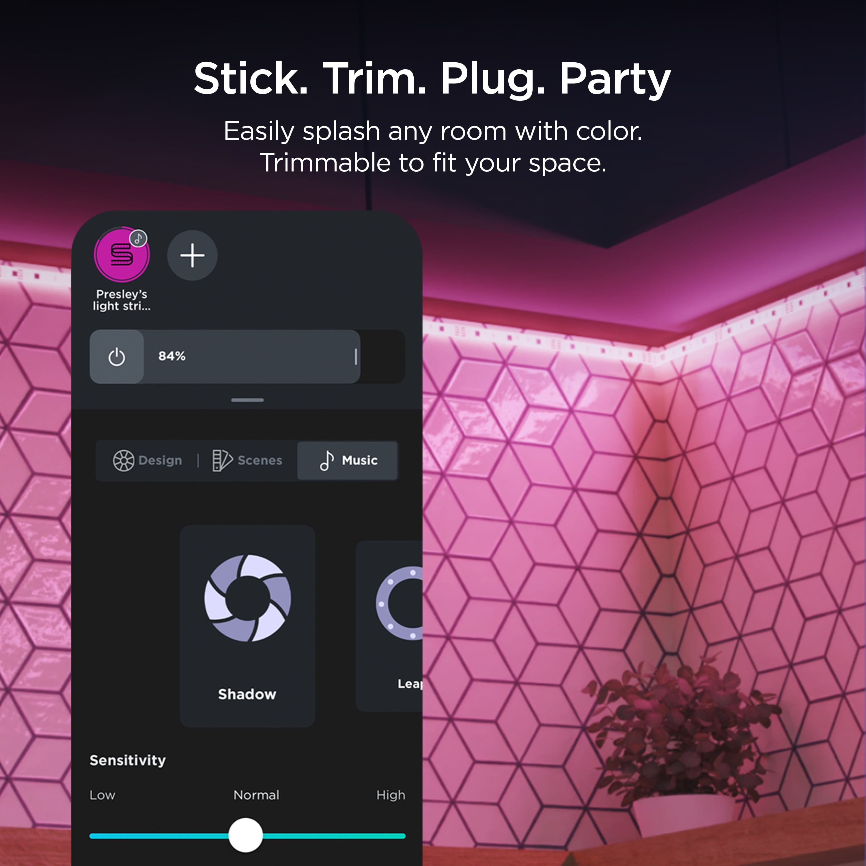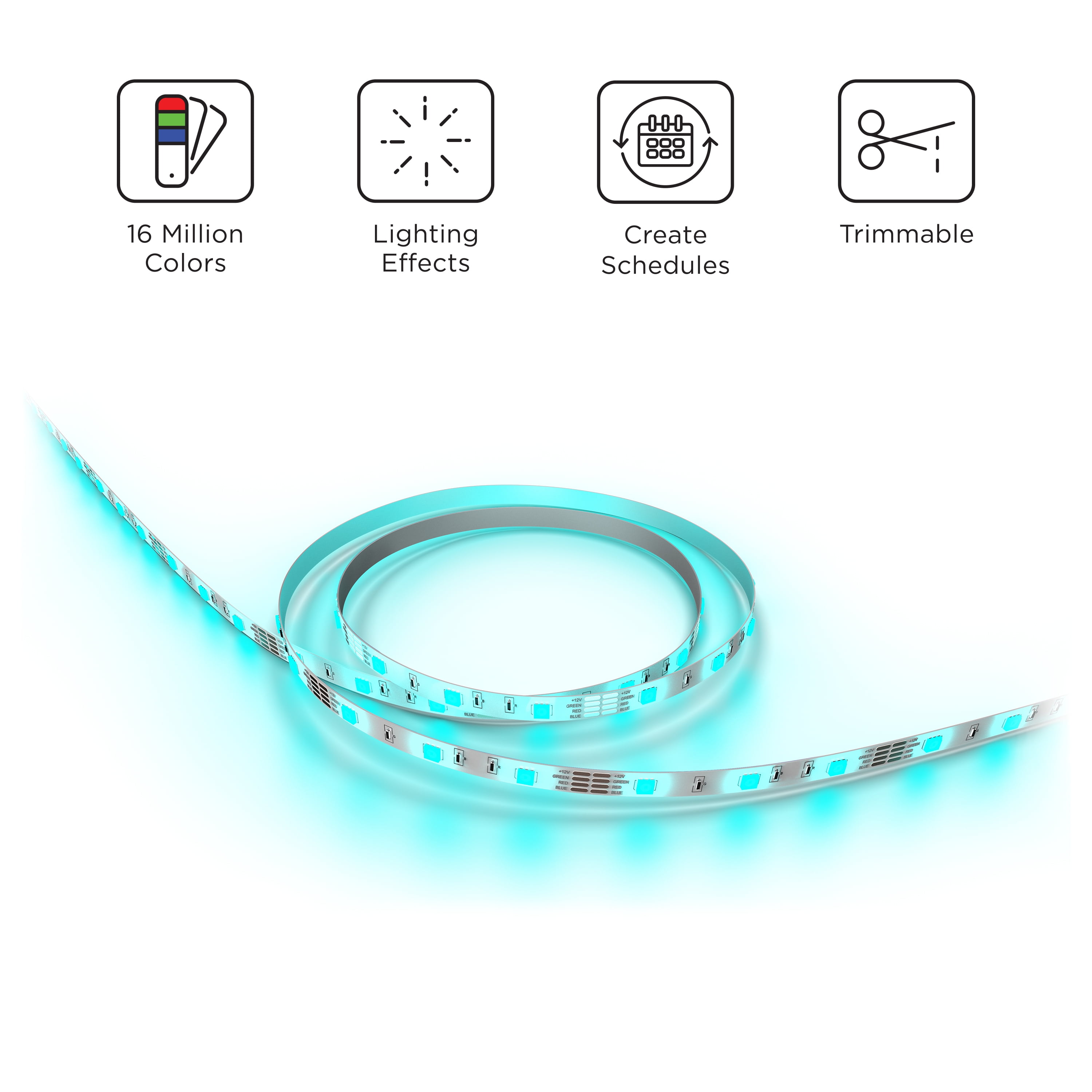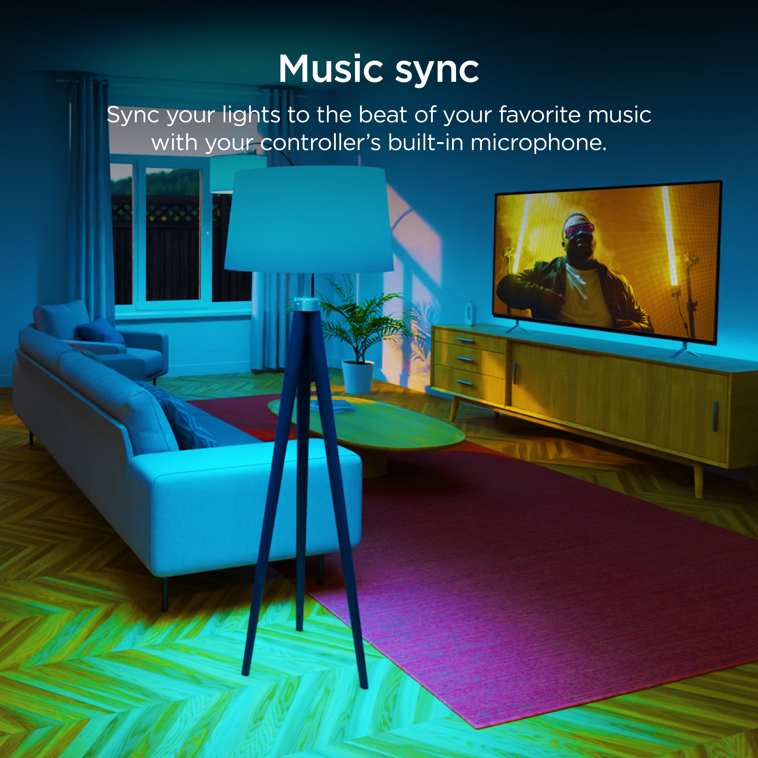 Pick a color, any color: Easily set the mood for game day, your next party, or just a night when you’re feeling blue (literally). Choose from 16 million options. Stick anywhere: Behind your TV, under your bed, across your ceiling, beneath your cabinets. Easily splash any room with color. Trimmable to fit your space. Custom presets: Save your favorite settings as presets, so you can change your lighting in a tap, or connect an Alexa or Google Assistant-enabled device to control with your voice. Music Sync: Sync your lights to the beat of your favorite music with your controller’s built-in microphone. Adjust brightness & temperature: Set the mood with just the right brightness and temperature. Effortless scheduling: Your home should run on your schedule. Have your lights turn on/off and even change brightness and temperature at specific times. Vacation mode: Keep your lights on a varied schedule so it always looks like someone’s home. Multi-strip sync: Control individual strips, rooms, or your entire home with the Roku Smart Home mobile app, Alexa, or Google Assistant. Sleep mode: Wake up to a warm sunrise hue, then drift off at night to a cool sunset with brightness that gradually adjusts on its own. Google and Google Home are trademarks of Google LLC. Google Assistant-enabled device required. Third party features and services may be subject to change or removal without notice. Indoor location 2.4GHz Wi-Fi® required.