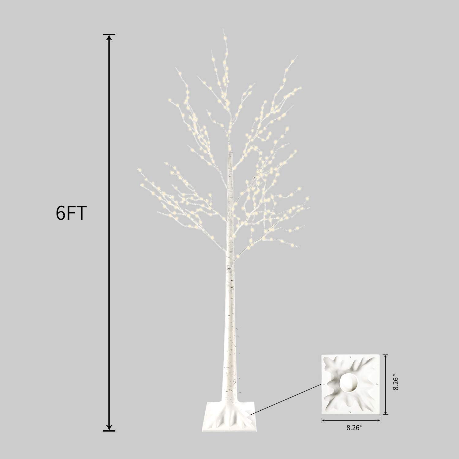 6 FT Birch Tree Light 440 pcs LEDs Warm White 8 Flashing Modes Remote Dimmable Lighted Trees for Home Decor Party Wedding Festival Decoration, etc. (Remote, Base and Plug Included)