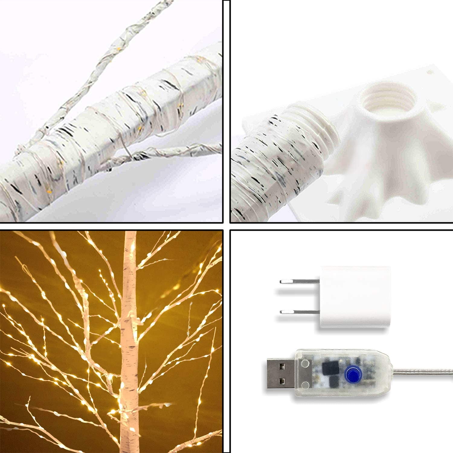 More LED Beads But Lower Price!440 pcs LEDs on this tree light can output very bright and beautiful lighting effect. Unlike the other similar products in the market. This birch tree light have up to 440 pcs led beads above the branch. These led can output soft warm and beautiful lighting effect for any decoration needs! Dimmable Remote Control Feature, Up To Eight of Lighting Modes. This lighted tree come with remote and you can set 8 flashing modes by remote control!It’s better than those manual control similar led birch tree. Simulation Birch Trunk And Bendable Branch. The simulation birch trunk and branch make this LED birch tree light more realistic. You can fold these bendable branch to any shape that you want. 9 FT Extension USB Power Cord, Stable Square Base. We use high quality Engineering plastics to manufacture this lighted birch tree. 9ft power USB cord will make you easier to plug in. And the mini square base is not take up many places but very stable for this 6 ft tree light. Multiple Application Occasion. This lighted LED birch tree can apply in many occasion such as home decor, party, festival, Christmas, wedding or business decoration, etc. You can use it in any indoor/outdoor decoration that you need!