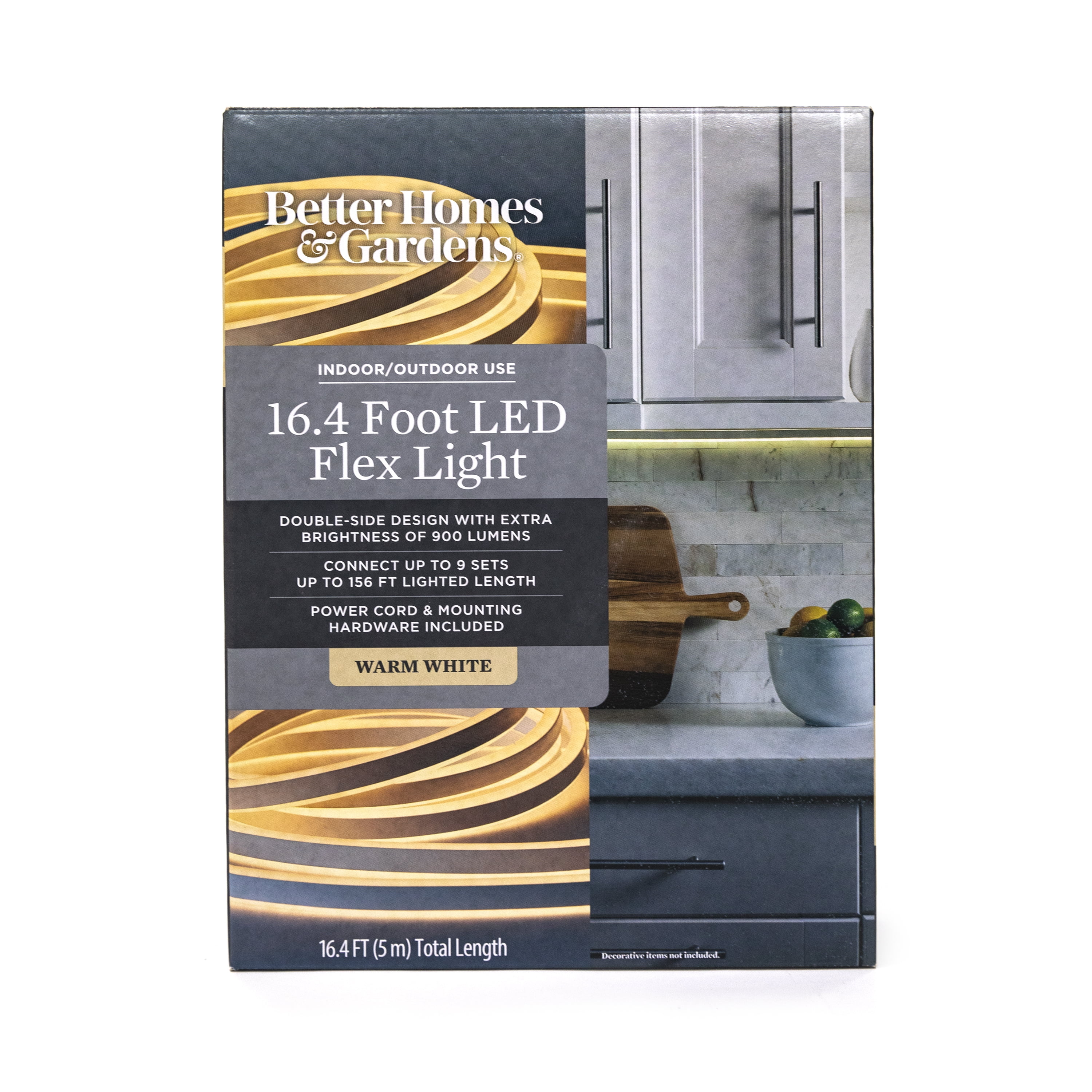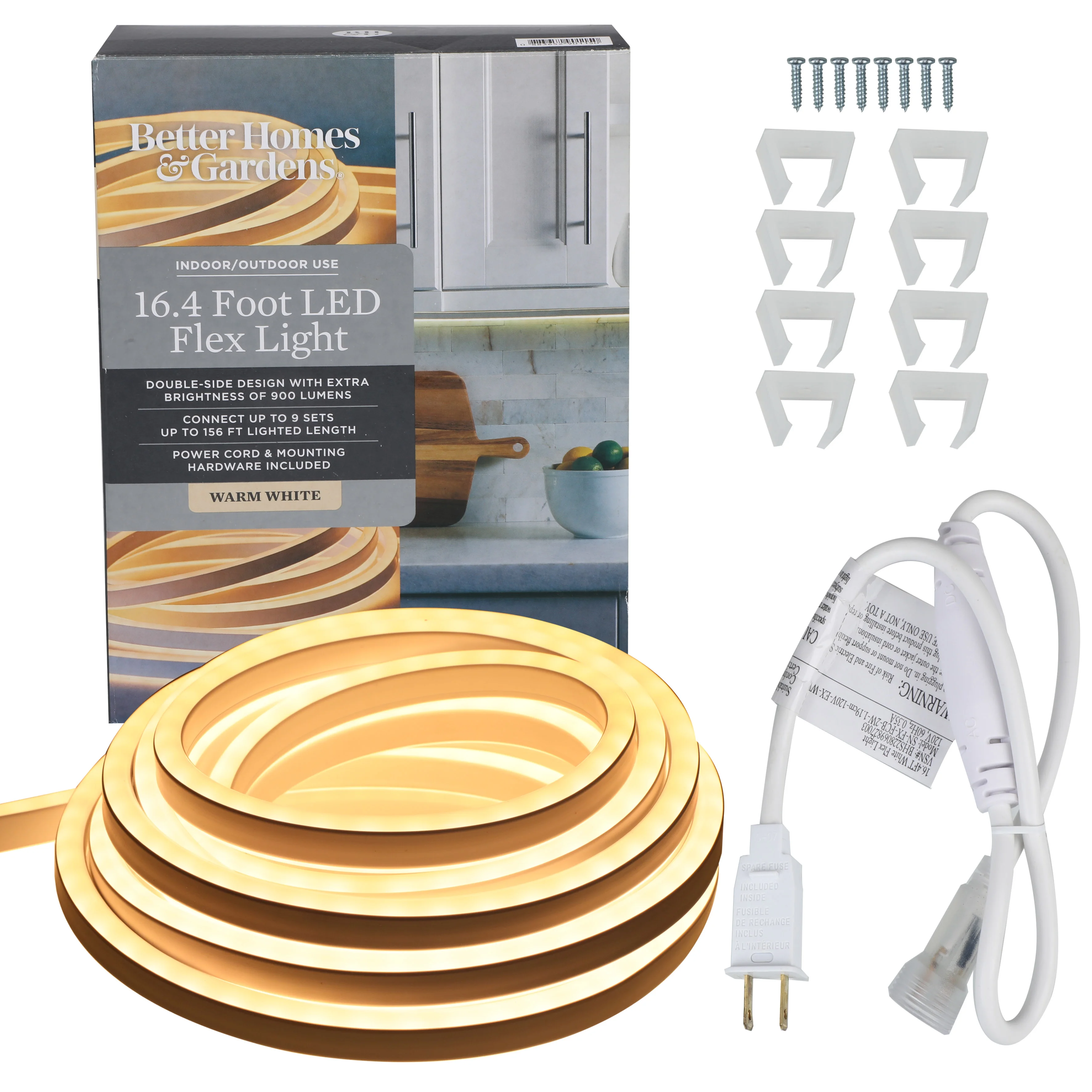 & Free ShippingAdd stylish, glowing accents to any space with the Better Homes & Gardens 16.4-Foot Plug-In White Neon Rope Flex Light. Featuring a sleek, double-sided glow design, this flexible light strip delivers consistent illumination from both sides, making it perfect for outlining mirrors, staircases, shelves, patios, or entertainment centers. The modern neon-style LED emits a clean white light for an elegant look, while the flexible rope construction allows for easy bending around corners or furniture. Built for both indoor and outdoor use, this plug-in light is an energy-efficient way to elevate your décor with a soft, continuous glow that stands out in any setting.