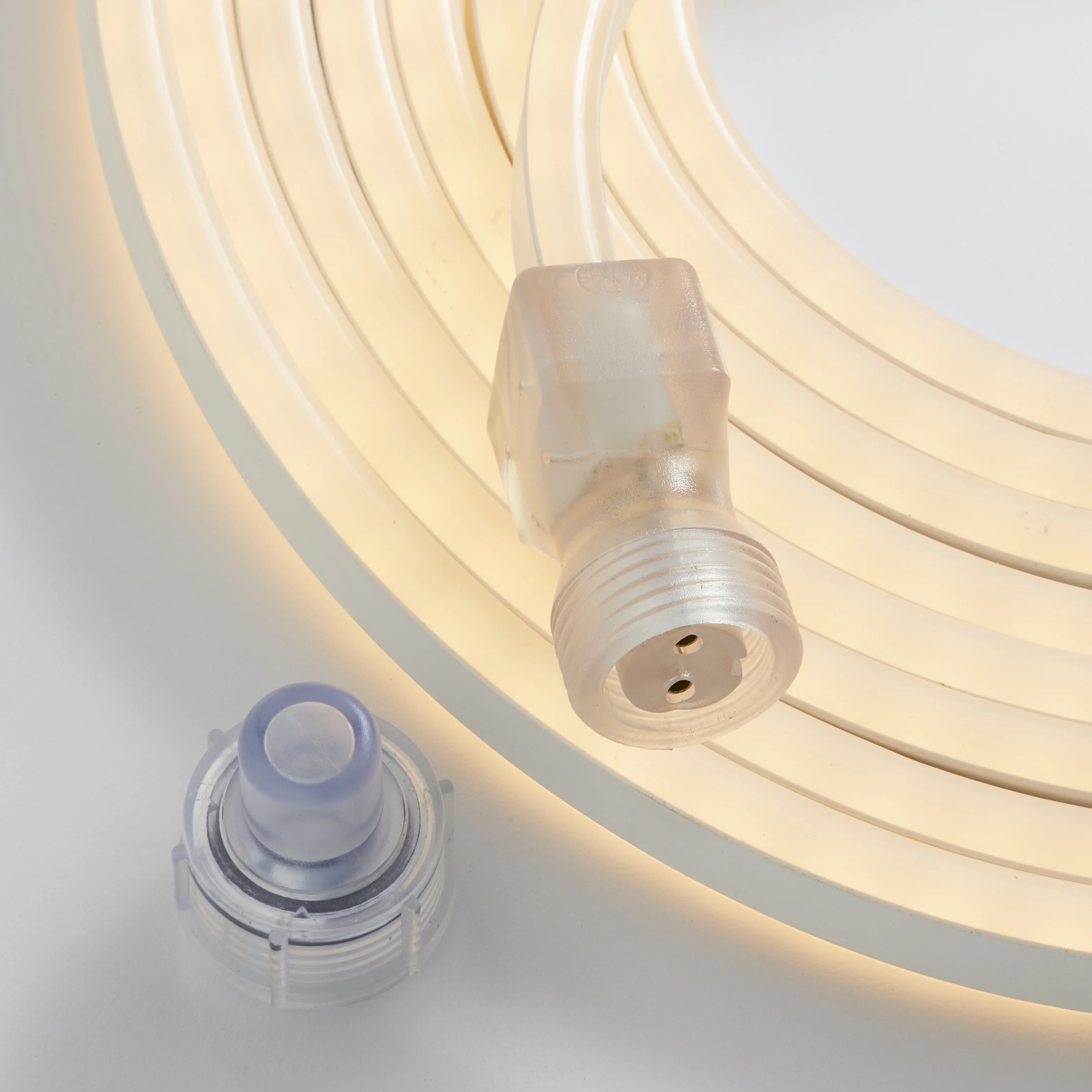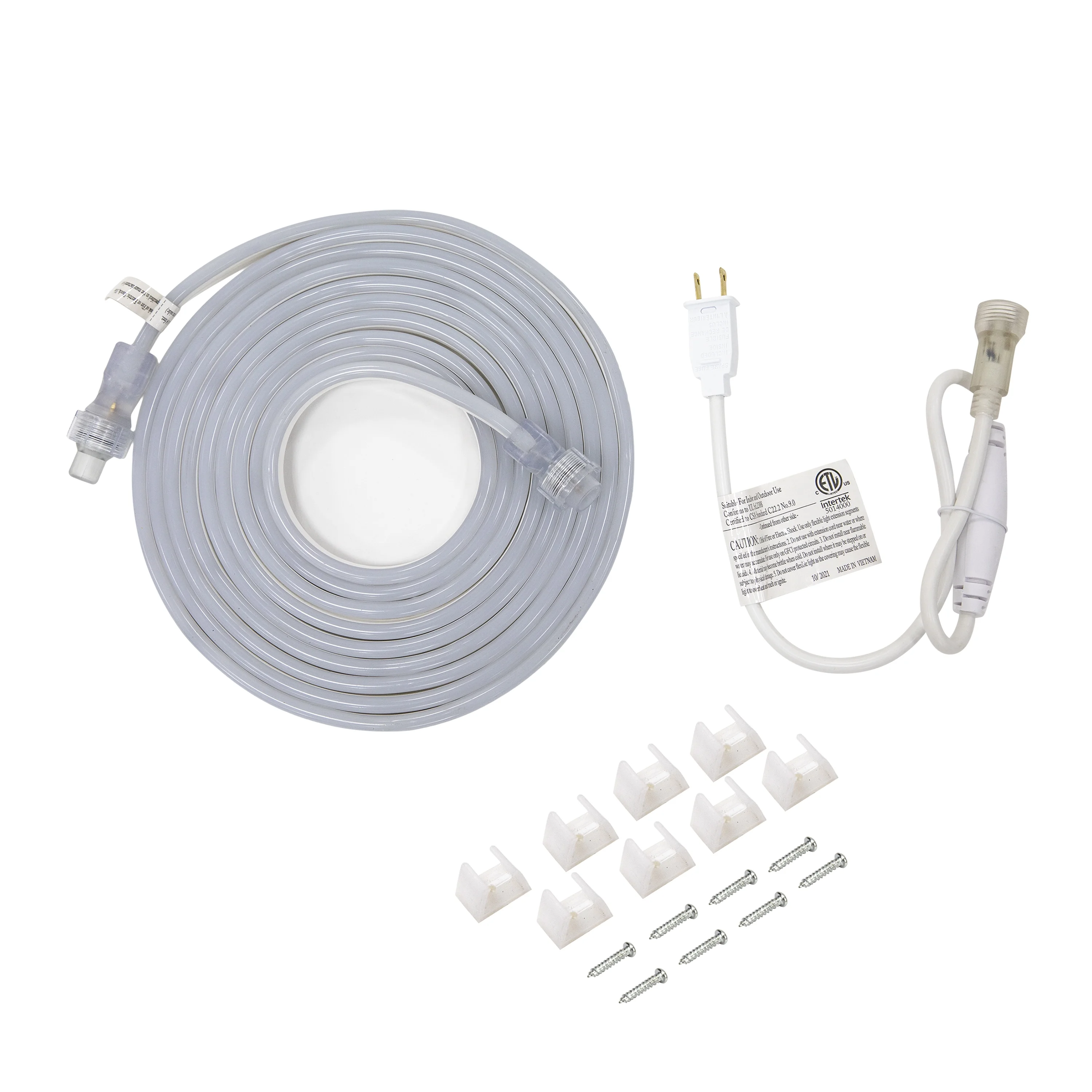 16.4-Foot Length – Ideal for accenting walls, windows, shelves, patios, and furniture with a bold, modern glow. Double-Sided Light Output – Emits light from both sides for fuller, more immersive illumination. Neon-Style White LED Glow – Provides a clean and elegant ambient light that suits any room or outdoor space. Flexible Rope Design – Easily bends and wraps to fit around corners, curves, and surfaces for custom layouts. Plug-In Operation – No batteries or hardwiring needed—simply plug into any standard outlet for instant lighting. Indoor/Outdoor Rated – Durable, weather-resistant construction suitable for home interiors and outdoor environments. Low-Profile Appearance – Sleek and subtle when unlit, allowing for discreet installation that complements modern décor. Energy-Efficient LED – Long-lasting performance with reduced power usage compared to traditional rope lights. Easy Installation – Includes mounting hardware or adhesive backing (depending on SKU) for simple setup on various surfaces.