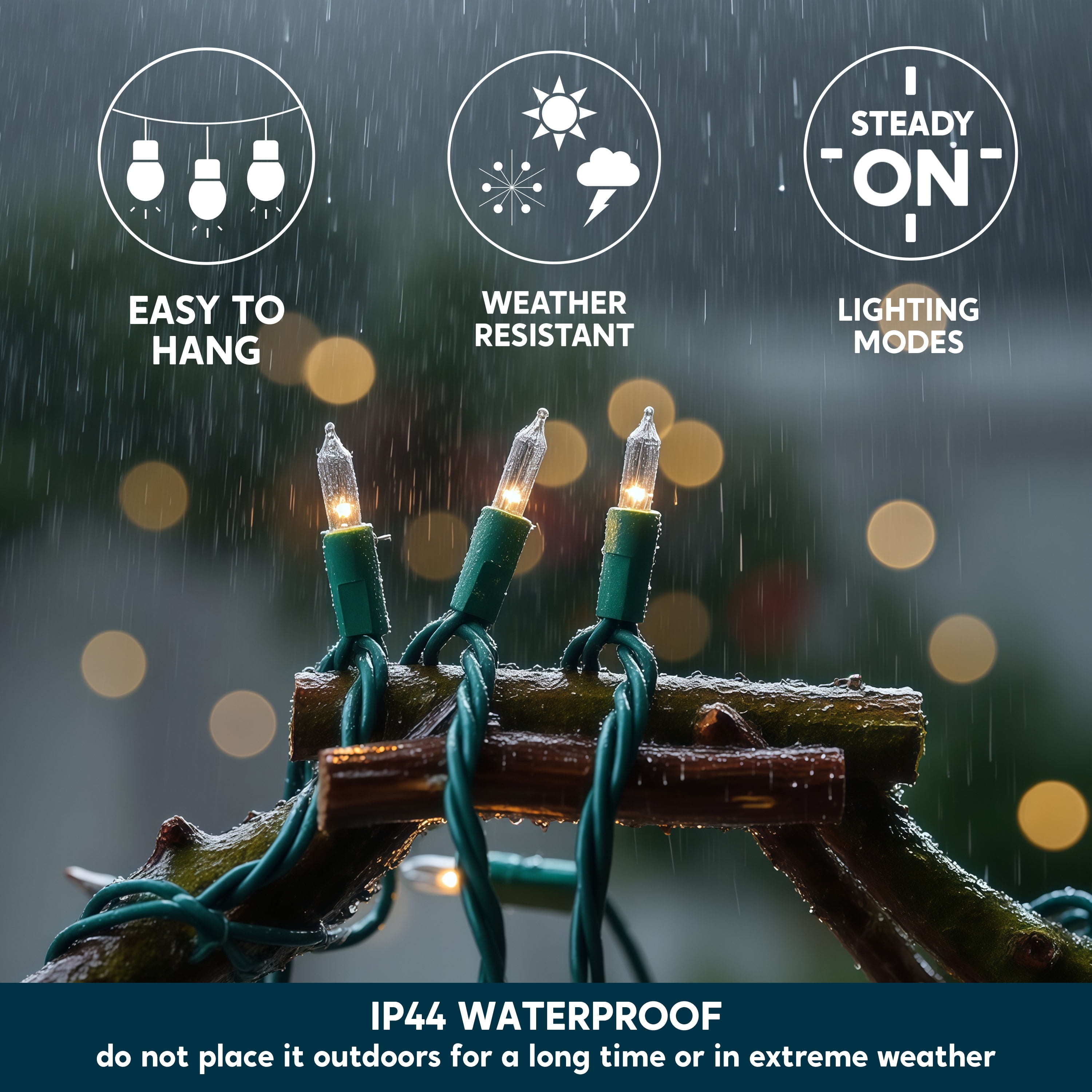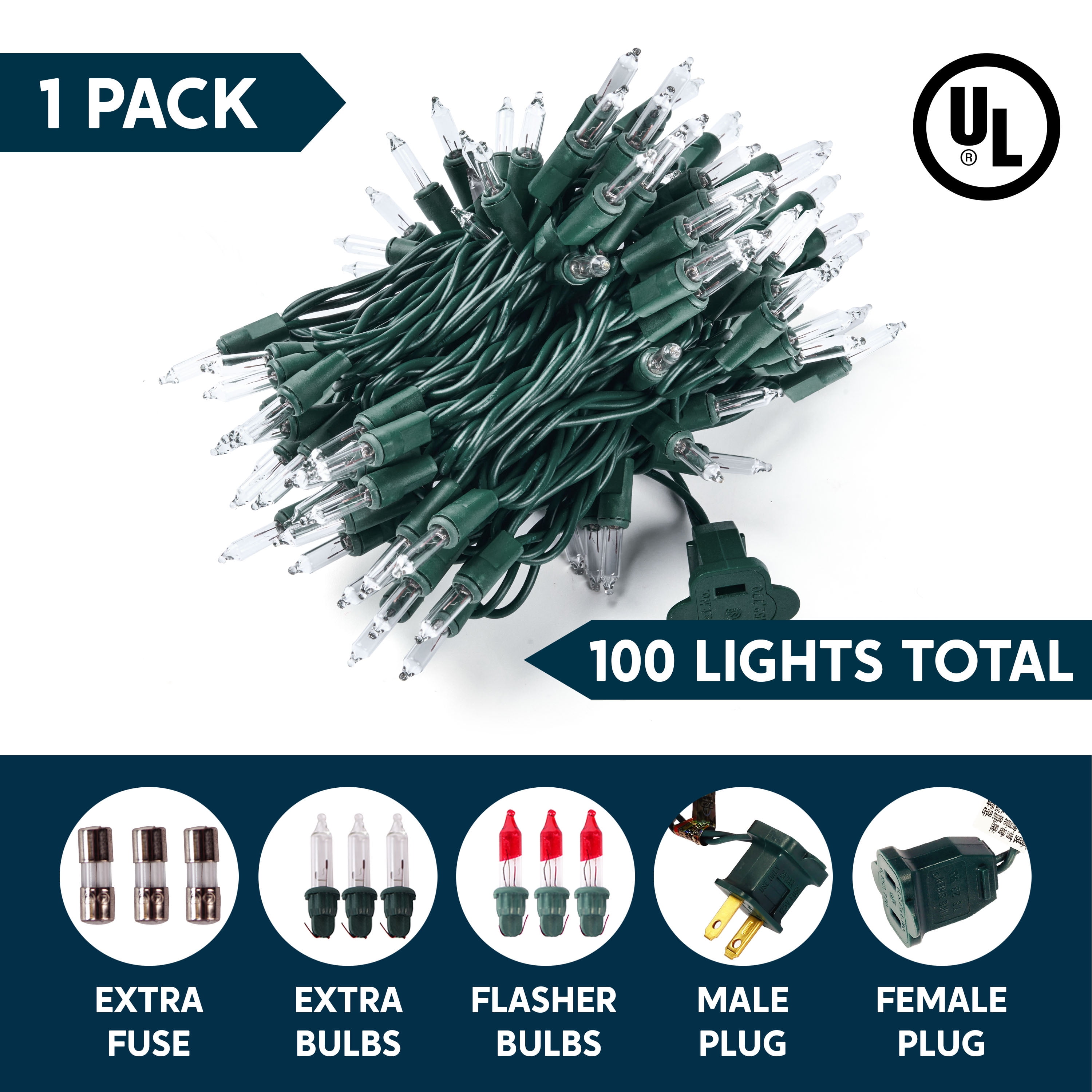 Safety Certified for Any Setting: Rest easy this holiday season with our string lights, which carry the UL588 certification for indoor and outdoor use. Built with IP44 waterproof protection and durable materials, they reliably handle rain, snow, and varied weather—ideal for Christmas trees, gardens, patios, and year-round decorating. 100 Warm White Mini Lights: Featuring 100 classic white mini bulbs, this 19.4-foot lighted string (21.4 feet total wire) creates a cozy, traditional glow. With bulbs spaced 2.36 inches apart, it adds a timeless festive charm to any space. Expandable Lighting Up to 5 Strings: Customize your décor effortlessly! These connectable lights allow you to join up to 5 sets end-to-end, extending your display to 107 feet of seamless illumination—perfect for large Christmas trees, rooftops, weddings, and expansive outdoor areas. Reliable Circuit with Spare Parts Included: Designed for worry-free operation, our lights use an independent circuit so if one bulb goes out, the others stay lit. Each set comes with 2 spare bulbs, a backup fuse, and 2 test flash bulbs, keeping your display shining bright all season long. Versatile for Every Celebration: More than just Christmas—these lights are perfect for Halloween, Valentine’s Day, parties, weddings, and more. Use them on trees, wreaths, fences, or indoors to instantly brighten up any festive occasion.